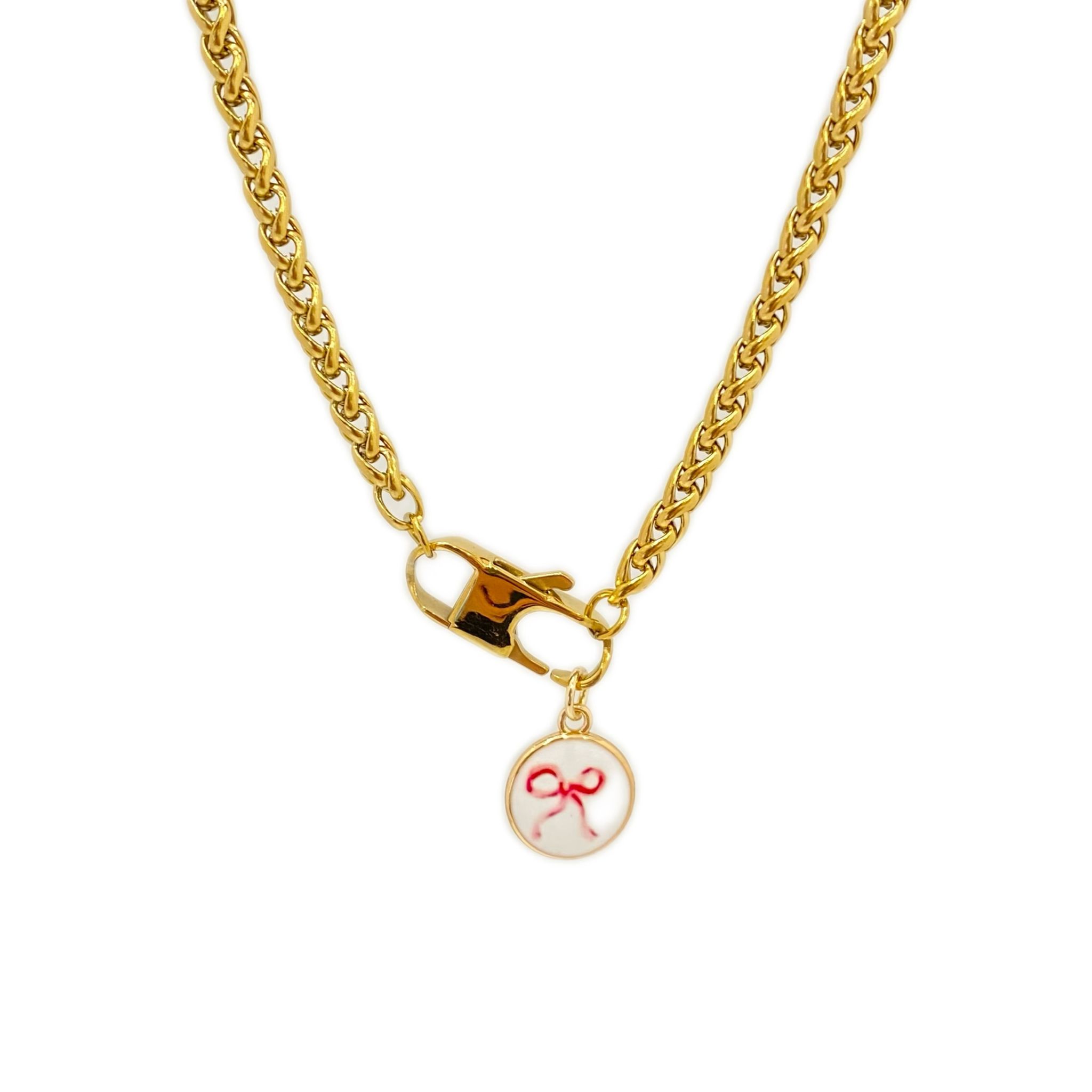 Il piccolo ciondolo rotondo in smalto bianco è impreziosito da un fiocco rosso, simbolo di dolcezza, eleganza e attenzione ai particolari. Un accessorio versatile, perfetto da indossare in ogni occasione.